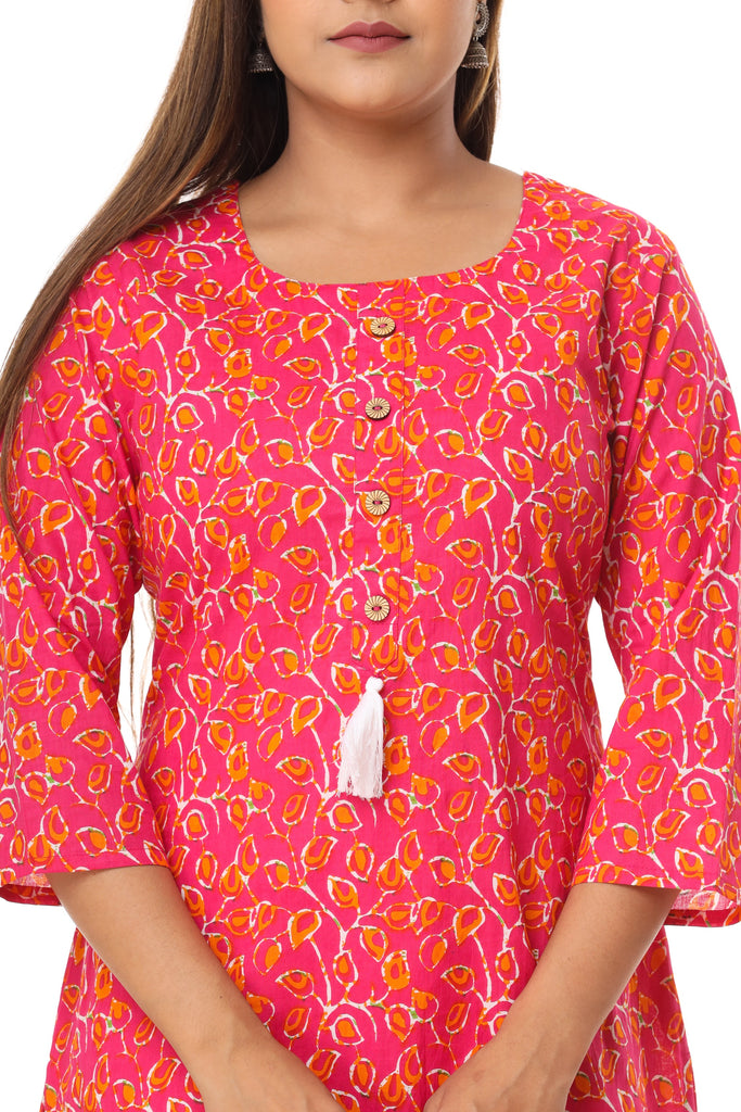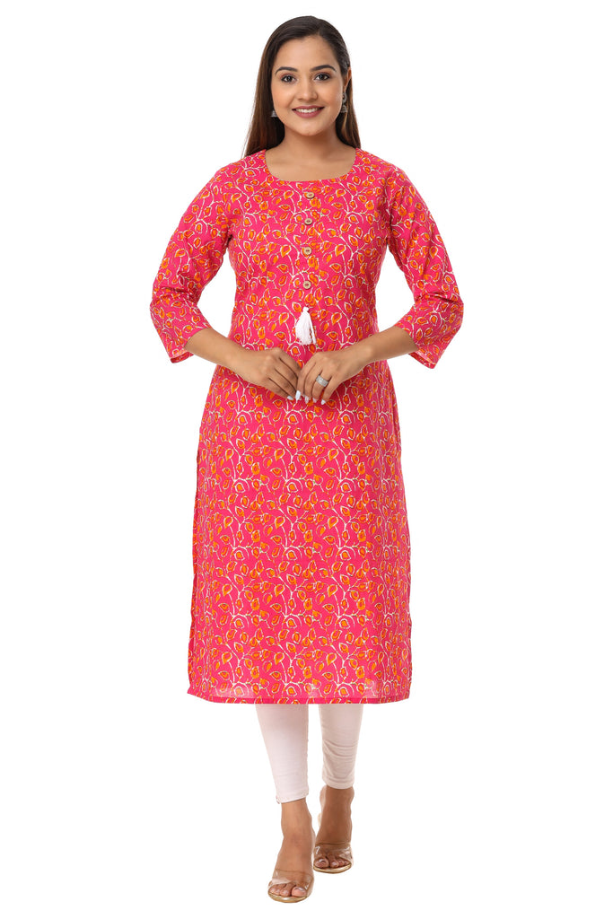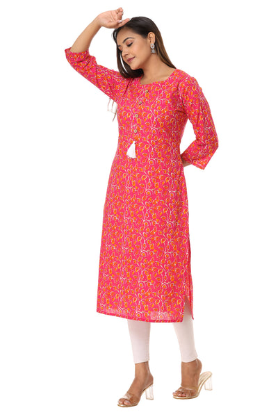 Women Pink Color Pure Cotton Kurta With tussle